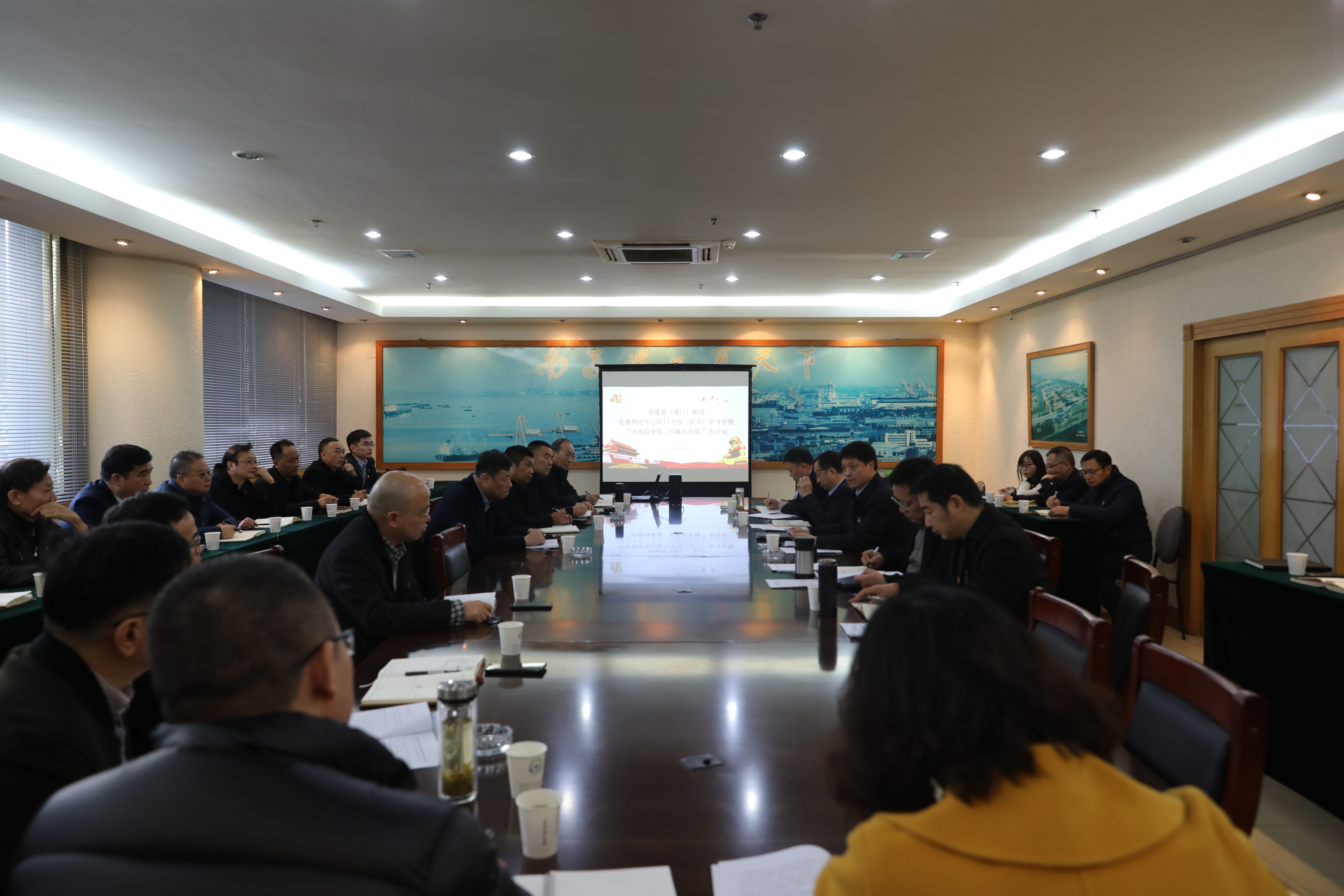 為深入學(xué)習(xí)貫徹黨的十九屆五中全會精神,推動(dòng)市國資委“決戰(zhàn)‘過萬億’、國企爭先鋒”主題實(shí)踐活動(dòng)落地生根。11月30日下午,南通港(港口)集團(tuán)黨委召開理論中心組(擴(kuò)大)學(xué)習(xí)會暨“決戰(zhàn)四季度、打贏收官戰(zhàn)”主題實(shí)踐活動(dòng)大討論。集團(tuán)黨委書記、董事長施渠平主持會議并講話,集團(tuán)理論中心組成員朱玉強(qiáng)、崔劍、吳亞華、朱一林、呂東芹、趙忠祥出席會議。