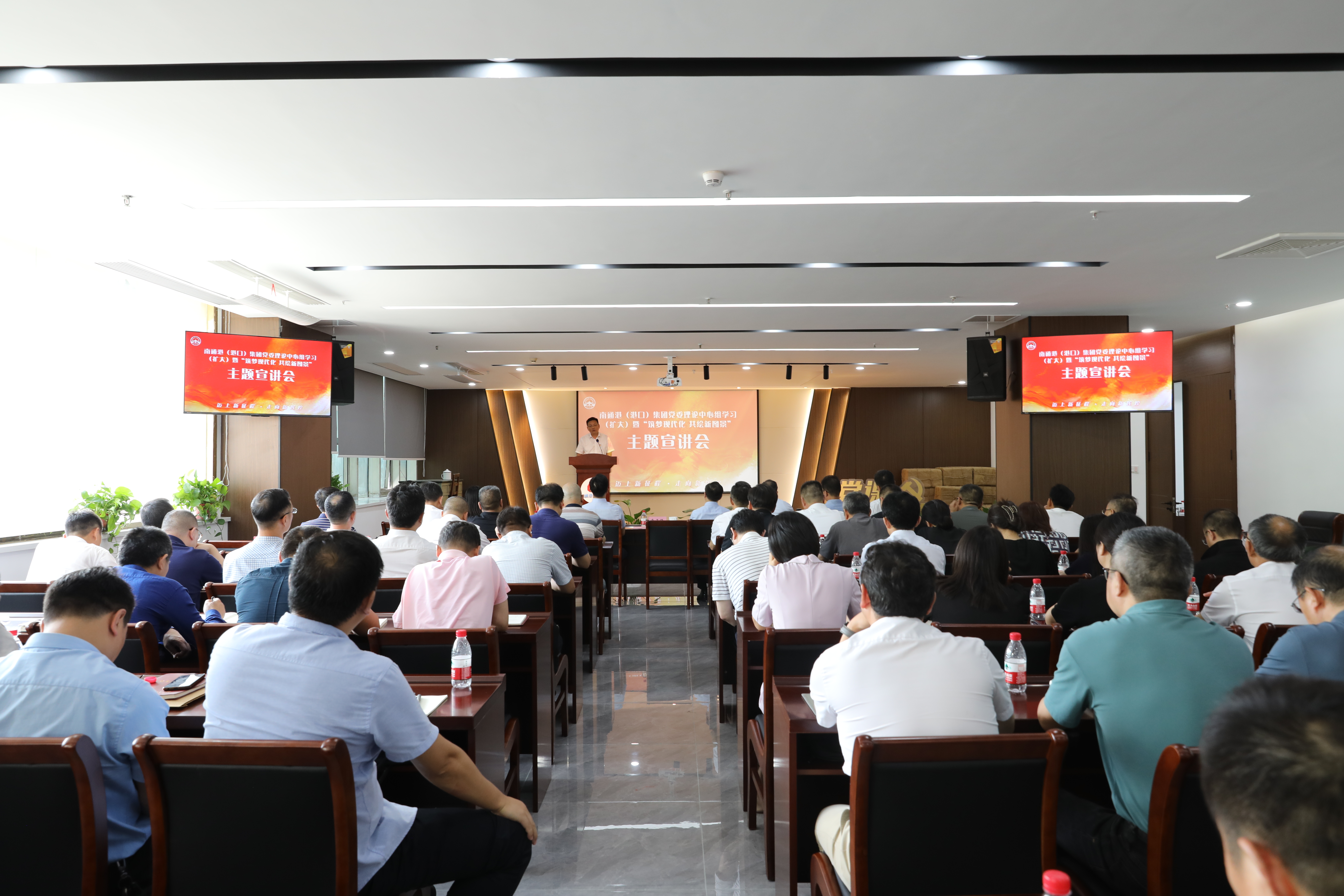為全面推動(dòng)習(xí)近平新時(shí)代中國特色社會(huì)主義思想深入基層、深入人心,更好激勵(lì)廣大干部職工群眾在新時(shí)代新征程上奮發(fā)有為、建功立業(yè),奮力推進(jìn)中國式現(xiàn)代化南通港新實(shí)踐,7月31日,集團(tuán)黨委在二樓會(huì)議室舉辦黨委理論中心組學(xué)習(xí)(擴(kuò)大)暨“筑夢現(xiàn)代化 共繪新圖景”主題宣講會(huì),集團(tuán)領(lǐng)導(dǎo)班子成員、中層以上干部、黨群科長共90余人參會(huì)。